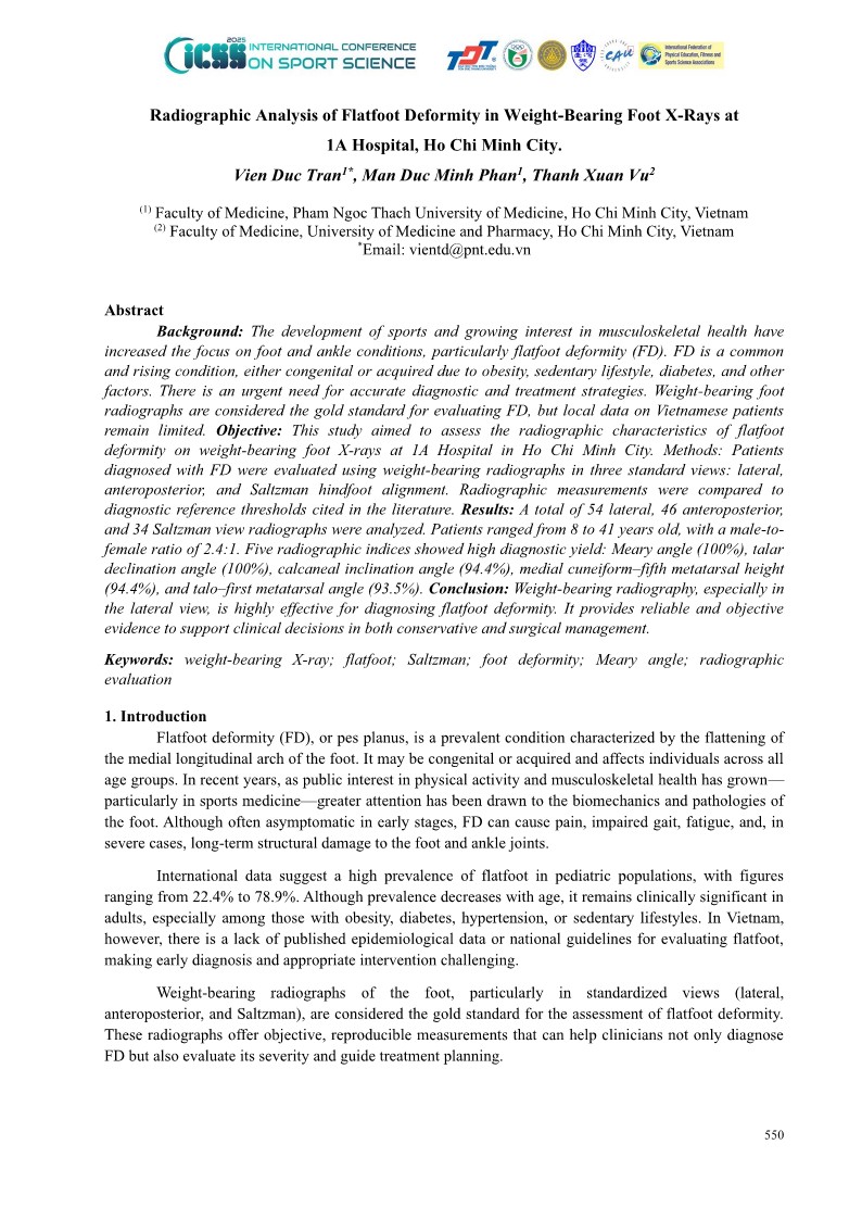 RADIOGRAPHIC ANALYSIS OF FLATFOOT DEFORMITY IN WEIGHT-BEARING FOOT X-RAYS