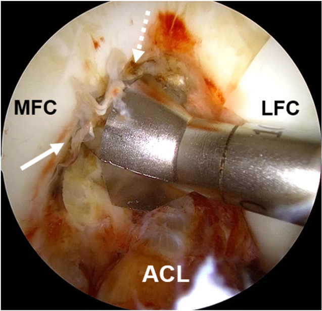 Một dụng cụ làm mịn loại lớn Gore (Smith & Nephew, London, Anh) được đưa lên qua đường hầm xương chày và luân chuyển ra ngoài qua ngõ soi trước–trong để loại bỏ các mảnh xương vụn và làm mịn miệng đường hầm. Đầu tròn khép kín của dụng cụ được kéo trở lại vào trong khớp trước khi được đưa ra ngoài qua ngõ soi trước–ngoài.
