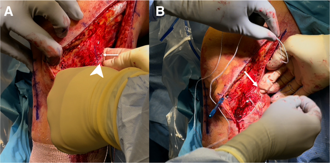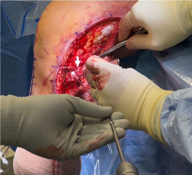 Sau khi xác định được dây chằng bên mác (FCL), một mũi chỉ căng được đặt vào và tiến hành bóc tách điểm bám xa của FCL trên chỏm xương mác. Một bộ dẫn hướng (Arthrex, Naples, FL) được đặt lên vị trí bám giải phẫu của FCL trên chỏm mác, sau đó một kim dẫn hướng được khoan xuyên qua, thoát ra ở mặt sau–trong của chỏm xương mác. Dùng banh Chandler để bảo vệ các cấu trúc phía sau, sau đó đường hầm được nong rộng bằng mũi khoan 7 mm (Hình 1).